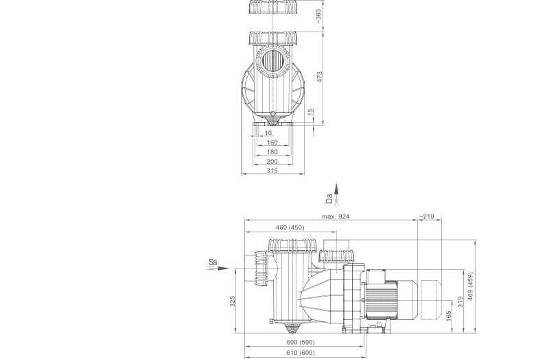 Önfelszívó, keringető szivattyú közületi medencékhez. Az előszűrő nyitószerszámát a csomag tartalmazza.