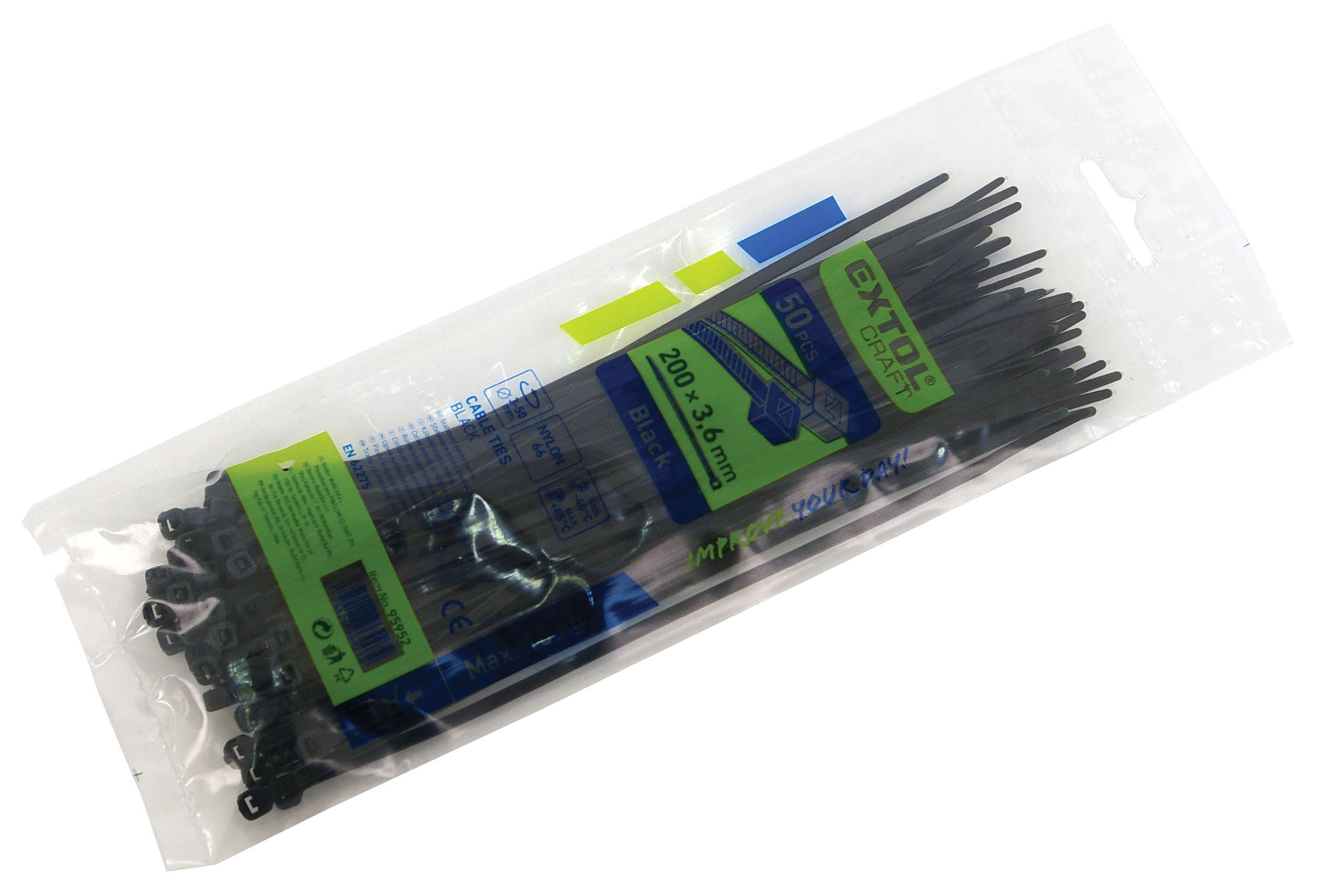 EXTOL PREMIUM kábelkötegelő 7,6×500mm 50db, fekete nylon; [ 8856172 ]