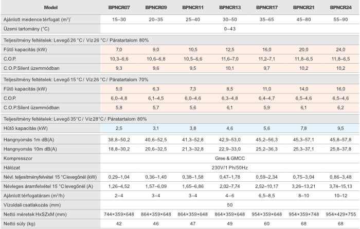 Fairland Comfortline BPNCR11 hőszivattyú technikai adatok