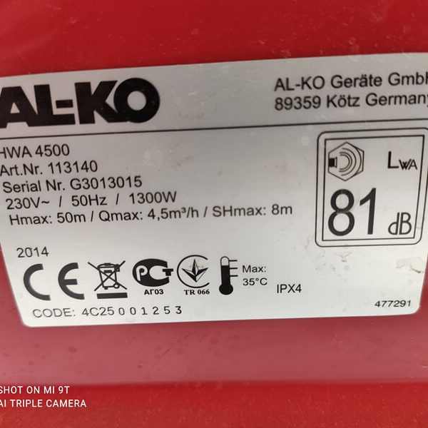 Felújított AL-KO HWA 4500 (230V) házi vízellátó szivattyú [ FLT-006 ]