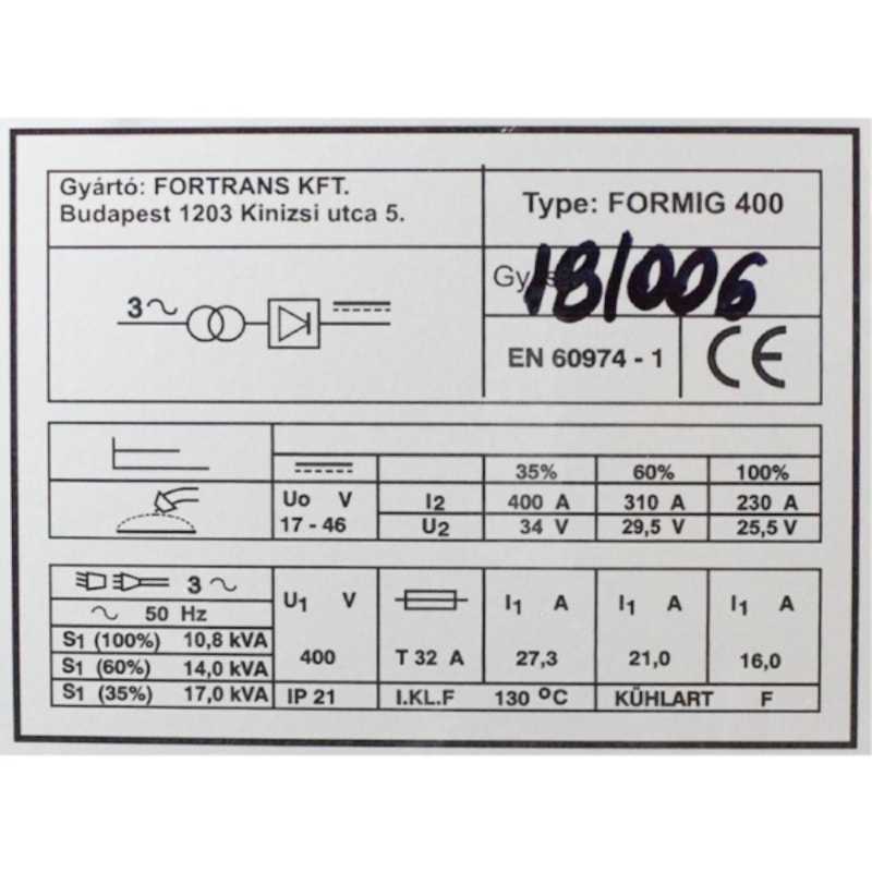 Hegesztő áram tartomány: 40-400 A