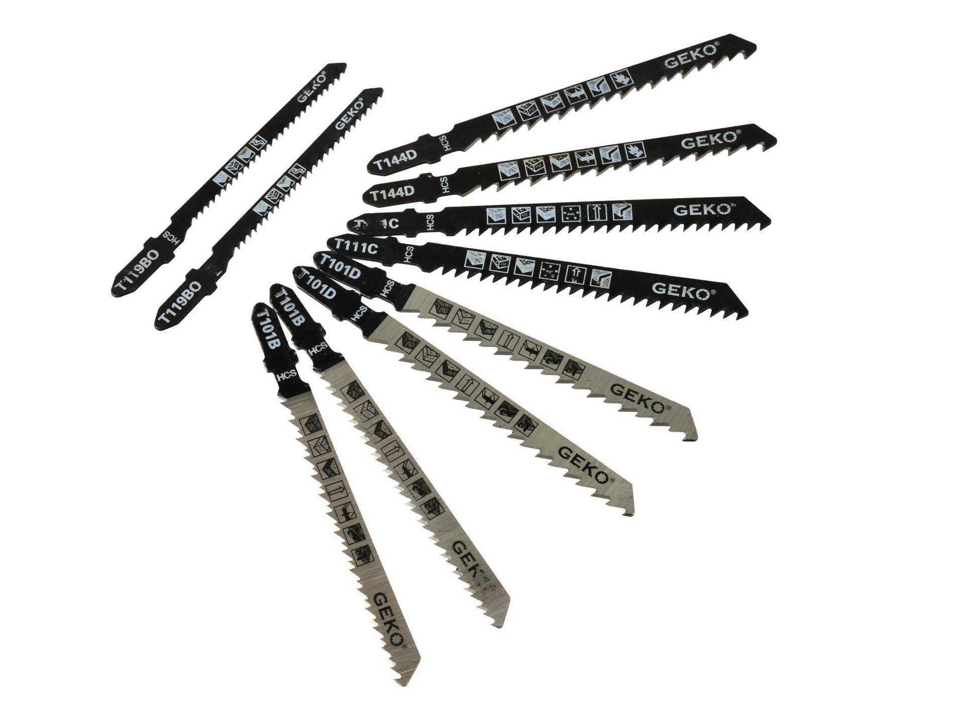 10 darab szúrófűrészlap készlet – HCS acélKiváló minőségű kirakós pengék.A pengék kiváló minőségű HCS acélból készülnek, lehetővé téve a pontos vágást.A standard T-fogantyúval ellátott pengék a legtöbb szúrófűrészhez illeszkednek.A készlet ötféle fűrészlapot tartalmaz: T111C, T101B, T144D, T101D, T119BO.A fűrészlapok leírása és célja:2x T 111 C Basic for Wood – egyenes, durva vágáshoz puha fában és 4–50 mm vastagságú táblán.2x T 101 B Clean for Wood – egyszerű, pontos vágáshoz puha fa, deszkalapból és rétegelt lemezből 3-30 mm vastagságban, valamint építőipához és műanyaghoz, vastagsága <30. A daraboláshoz nem szükséges az anyag szélétől indulni.2x T 144 D sebesség fa esetén – egyenes, durva vágáshoz puha fában és vágólapra 5-50 mm vastag. A daraboláshoz nem szükséges az anyag szélétől indulni.2x T 101 D Clean for Wood – egyszerű, pontos és tiszta vágáshoz puha fa, forgácslapok, ácsok és 10-45 mm vastag farostlemezek készítéséhez.2x T 119 BO Basic for Wood – ívelt vágáshoz keményfa, lágy fa, forgácslap, asztalos, farostlemez 2-15 mm vastagságban.A termék jellemzőikiváló minőségű HCS acélból készülstandard T-fogantyúilleszkednek a BOSCH, a MAKITA és más T-markolatú szúrófűrészekhez