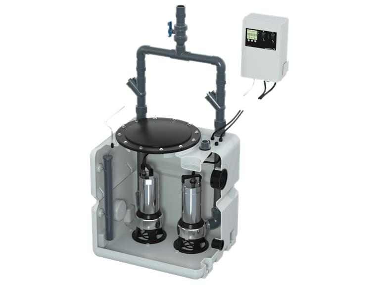 A Duolift 270 AP50B komplett, ikerszivattyús szennyvízátemelő rendszer, amelyet kifejezetten nagyobb szilárdanyag-tartalmú szennyvizek átemelésére terveztek. A nagy térfogatú tartály és az AP50B szivattyúk kombinációja biztosítja a megbízható, hosszú távú működést.