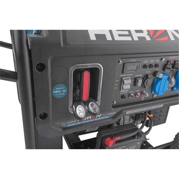 A legtöbb inverteres áramfejlesztő 1-3 kVA teljesítményre képes. A HERON 8896233 azonban egy új kategóriát teremt: 6 kVA (6000 VA) csúcsteljesítményt nyújt digitálisan stabilizált (inverteres) formában. Ez azt jelenti, hogy egyetlen gépről üzemeltetheti a nagy fogyasztású szerszámgépeket ÉS az érzékeny elektronikát (szerverek, hangtechnika, orvosi műszerek) is.
